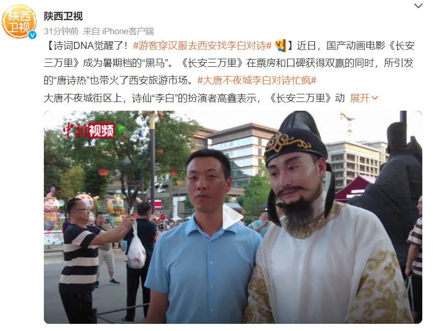 造成西安这般热闹的原因也很简单,因为观众在看完《长安三万里》后,就想迫不及待地去到李白诗里写的地方。