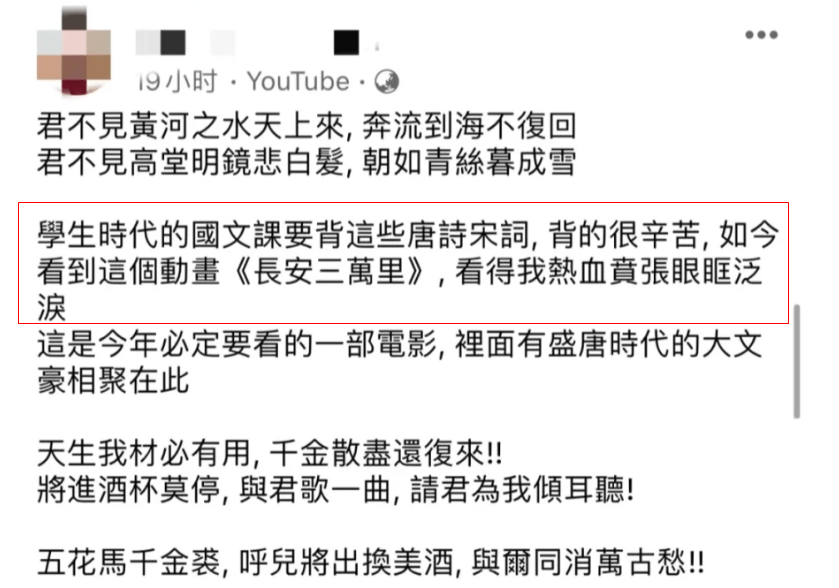 《长安三万里》的大火,也引起了我们对岸台湾同胞的热议,他们觉得能从这部电影里找到寄托,这就是刻在中国人骨子里的文化基因。