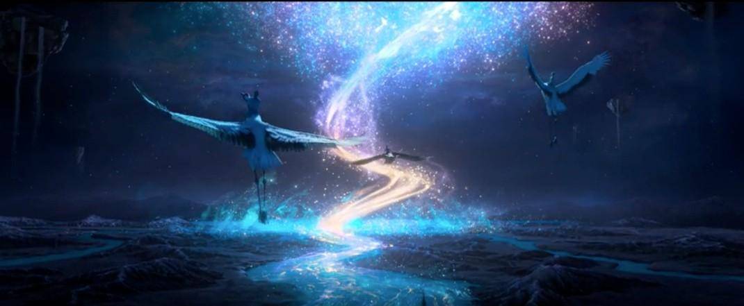 带着醉意的李白举杯吟出《将进酒》,和好友高适、杜甫、岑夫子、丹丘生等人,一齐驾着仙鹤飞越银河之上。