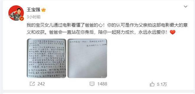 王宝强也欣慰地表示:“我的宝贝女儿通过电影看懂了爸爸的心!你的认可是作为父亲拍这部电影最大的意义和收获。”