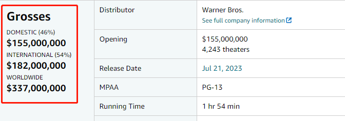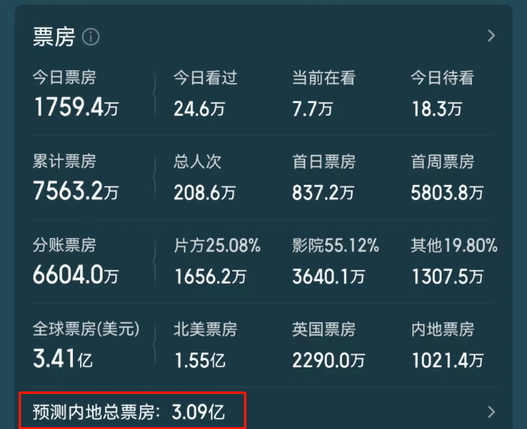 目前影片全球口碑票房大爆,北美首周末劲收1.55亿美元刷新2023年度开画纪录,全球首周累计3.37亿美元(约合24亿人民币),猫眼预测的内地总票房也上调至3亿 。
