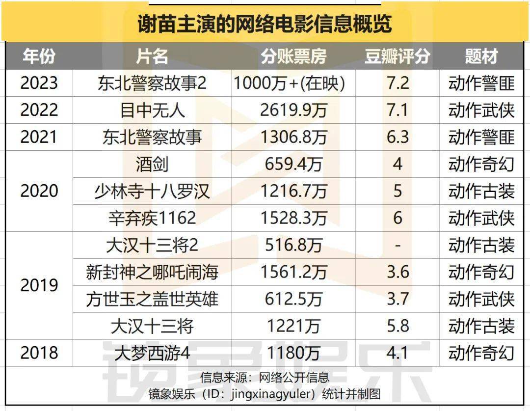 据镜象娱乐统计,在网络电影快速发展这几年,谢苗出演的网络电影几乎都是动作片。截至目前,其主演的网络电影累计分账票房已经超过1.3亿元。