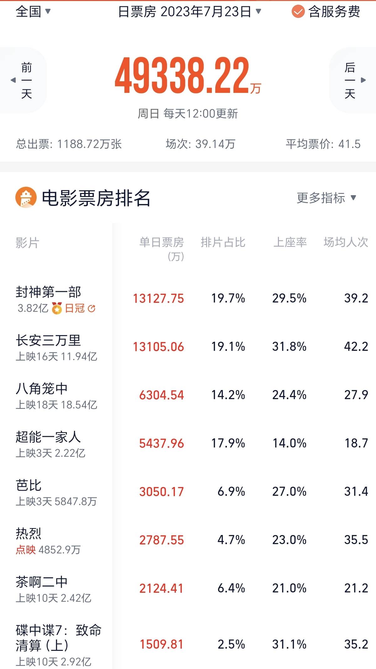 原标题:《封神》低开高走日票房创新高 《长安三万里》强势冲20亿
