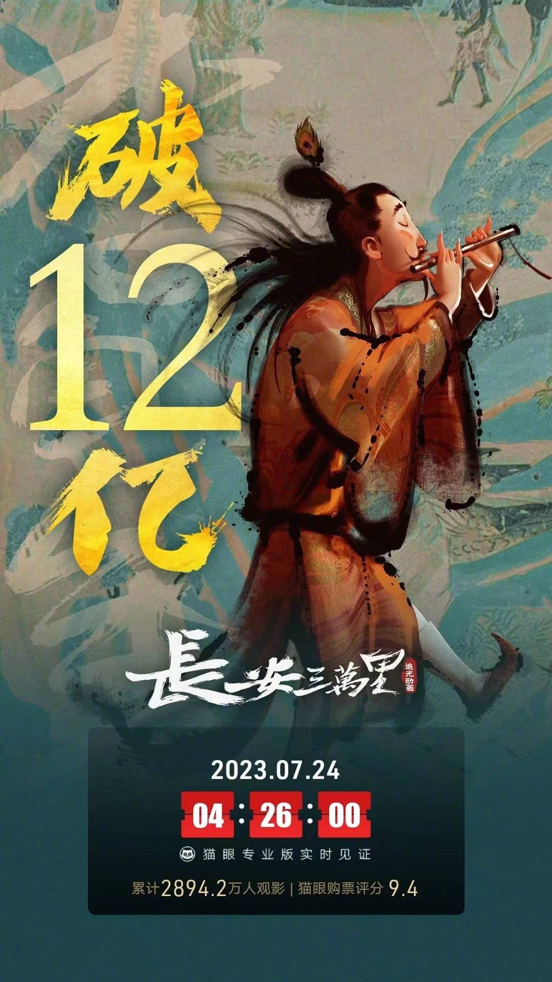 追光动画电影《长安三万里》第三周揽5.11亿逆袭夺冠,上映16天累计11.92亿,截至目前已破12亿;