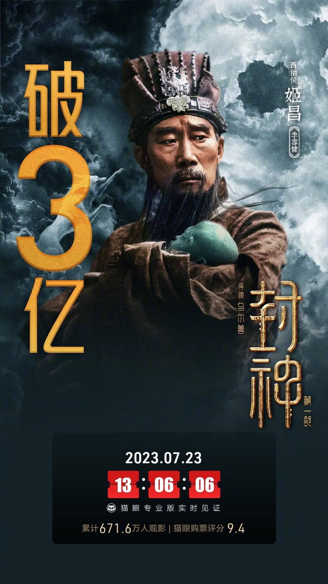 乌尔善执导东方神话电影《封神第一部》首周四天收3.68亿居亚,豆瓣评分7.8,周六周日两天连夺日冠;