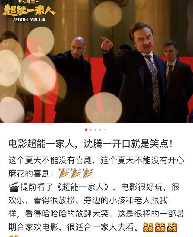 尤其是喜剧片,与其他题材还有所不同,一旦落入俗套基本就会以失败告终,只有不断的玩出新花样,才能做到口碑与票房双丰收,而这一点恰好是开心麻花的强项。比如这次暑期档中唯一的喜剧片《超能一家人》,简直是把想象力拉到了一个中国电影的巅峰!