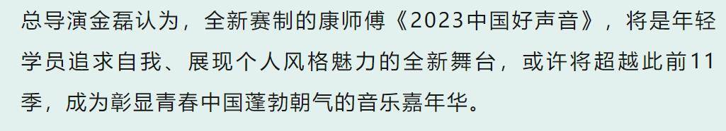 总导演金磊更是直言《2023中国好声音》或许将超越此前11季!