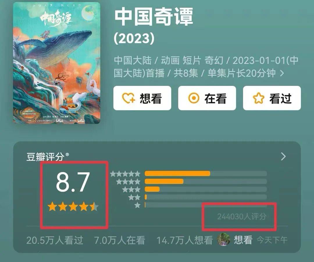 在今年年初,动画短片《中国奇谭》就抛出了“王炸”,它是由八个独立的小故事组成的,如今在20多万人的评分下,还保持着8.7的高分。