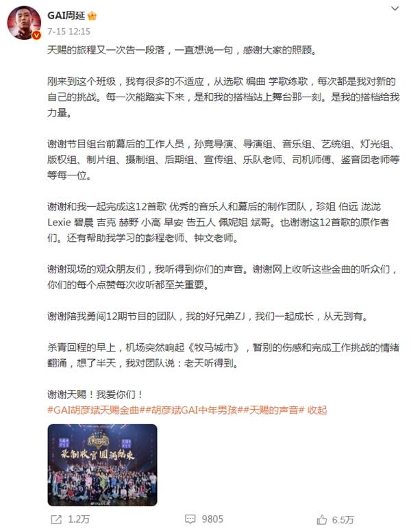 像歌迷所说的,GAI周延做的是感人的、有力量的音乐,尝试各种风格,真正将rap融入在作品里,不拘泥于唱或者说,呈现出越来越多的可能性,也影响了很多人,通过rap的方式表达情感和想法。历尽千帆仍在拼搏,初心不忘至真至诚。