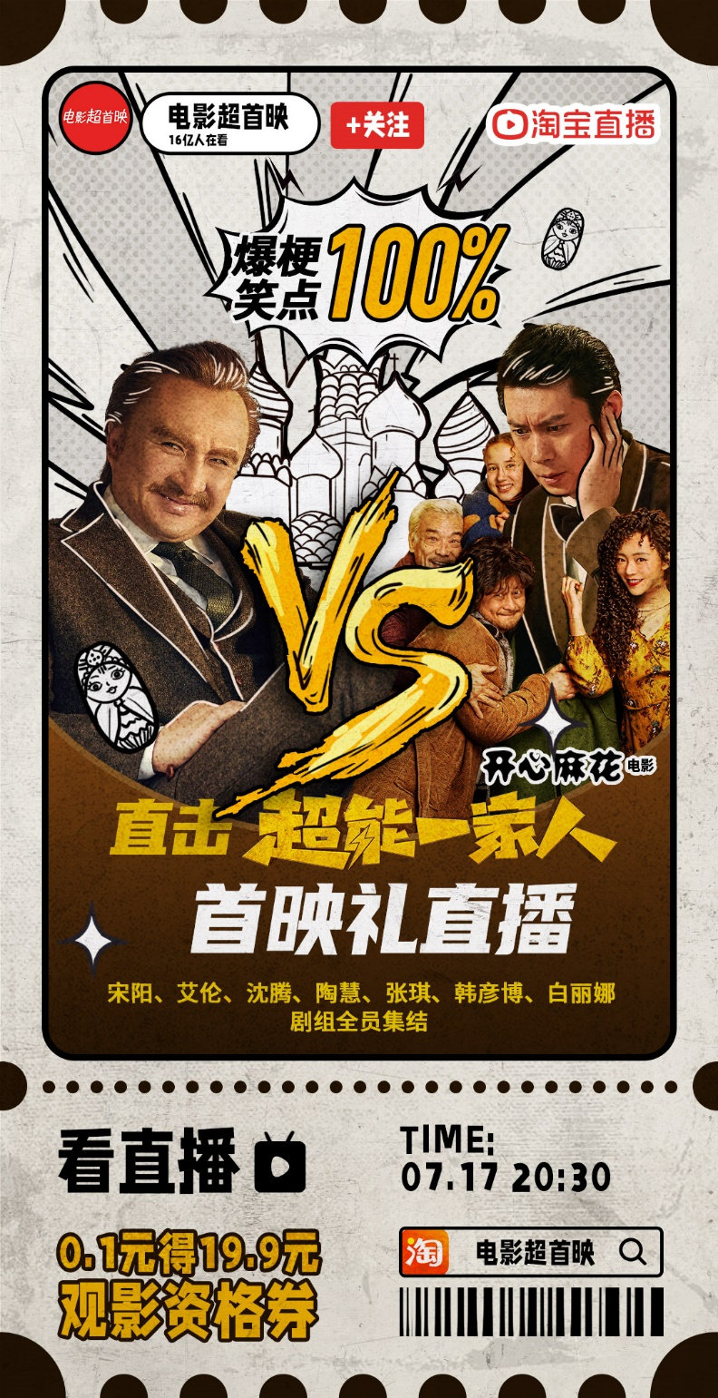 原标题:今晚8点半,沈腾携《超能一家人》剧组上淘宝直播首映礼