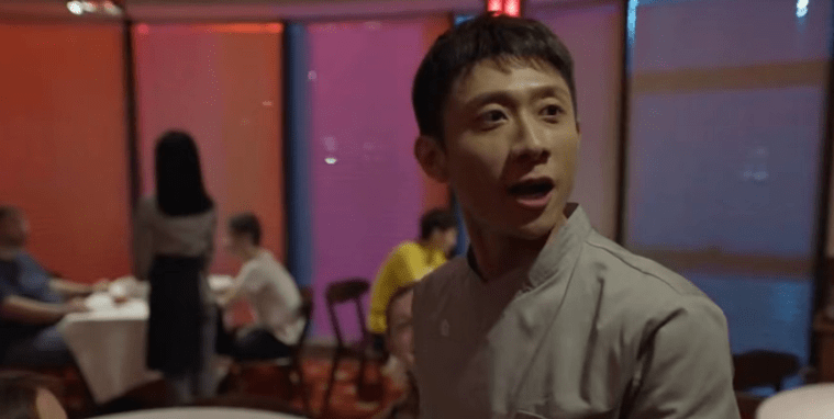 比如在餐厅中,演戏的样子依然就是以吼为主,感觉平静下来他就演不好了一样。