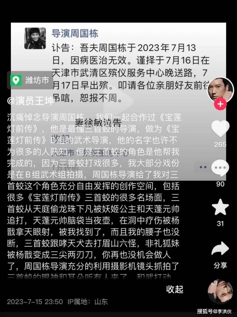 还有在《宝莲灯前传》中饰演“三首蛟”的王坤,直言周导对自己帮助很大,他很震惊,很心痛。