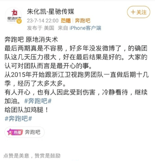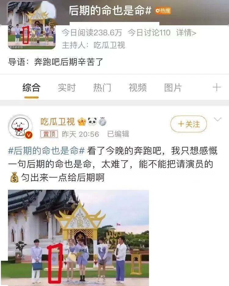而在节目顺利播出后,跑男的后期团队也终于松了一口气,发文表示后期真的不容易: