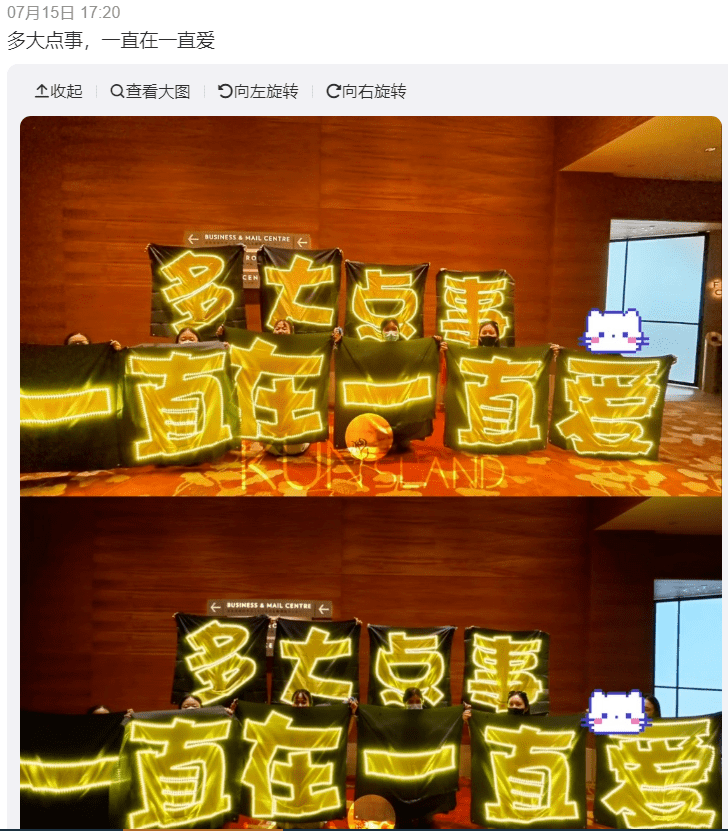 只有我们爱困,专门拉了长条幅,还在期待蔡徐坤: 多大点事,一直在一直爱。