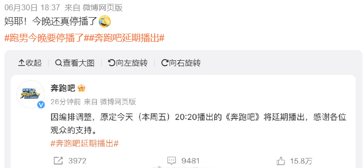 要知道,因为蔡徐坤的关系,跑男已经停播6.30、7.7两期了↓