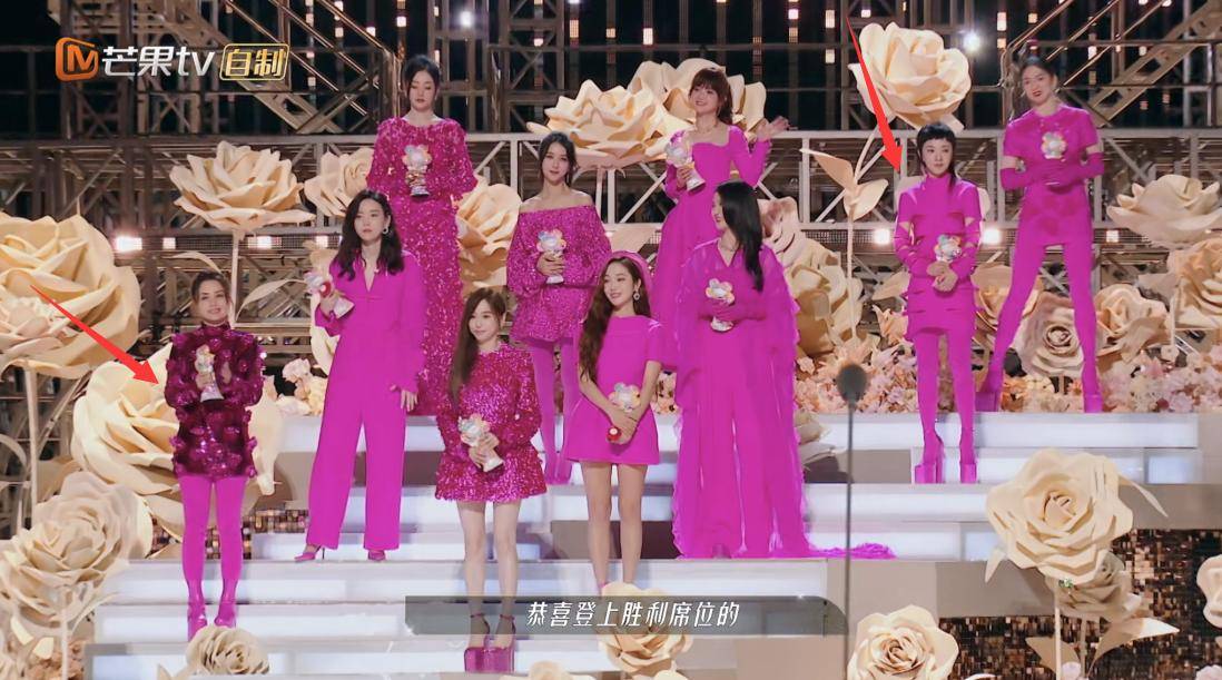 按照前几季的站位,身为总冠军的陈嘉桦在合影时应该稳居C位,但值得注意的是她当天并未站在最中间,而是紧挨着谢娜坐在靠左边的位置,身材高挑的黄丽玲站在比较靠中间的位置,而顺利成团的姐姐站位比较靠前,返场以及未成团的姐姐自动站在了靠后的位置。