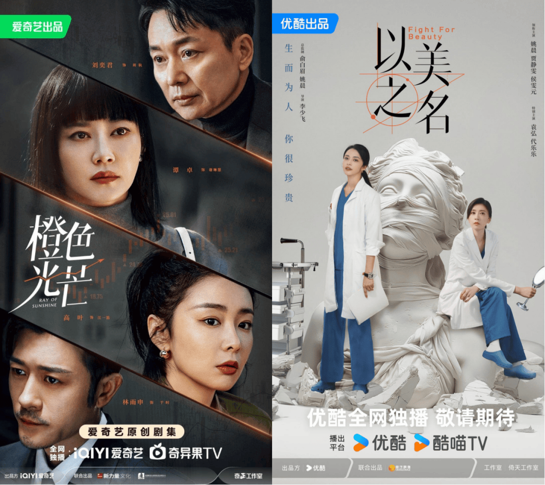 此外,以都市生活为背景的待播剧还有金融职场剧《橙色光芒》和医疗剧《以美之名》,前者将同时登陆爱奇艺和优酷,汇集谭卓、高叶、刘奕君、林雨申等一众实力派;后者为优酷独播剧,姚晨、贾静雯、侯雯元领衔主演,将聚焦医美领域的职业故事。值得一提的是,二者中的主角人物皆为双女主设定,如若同期播出想必又将是一场好戏。