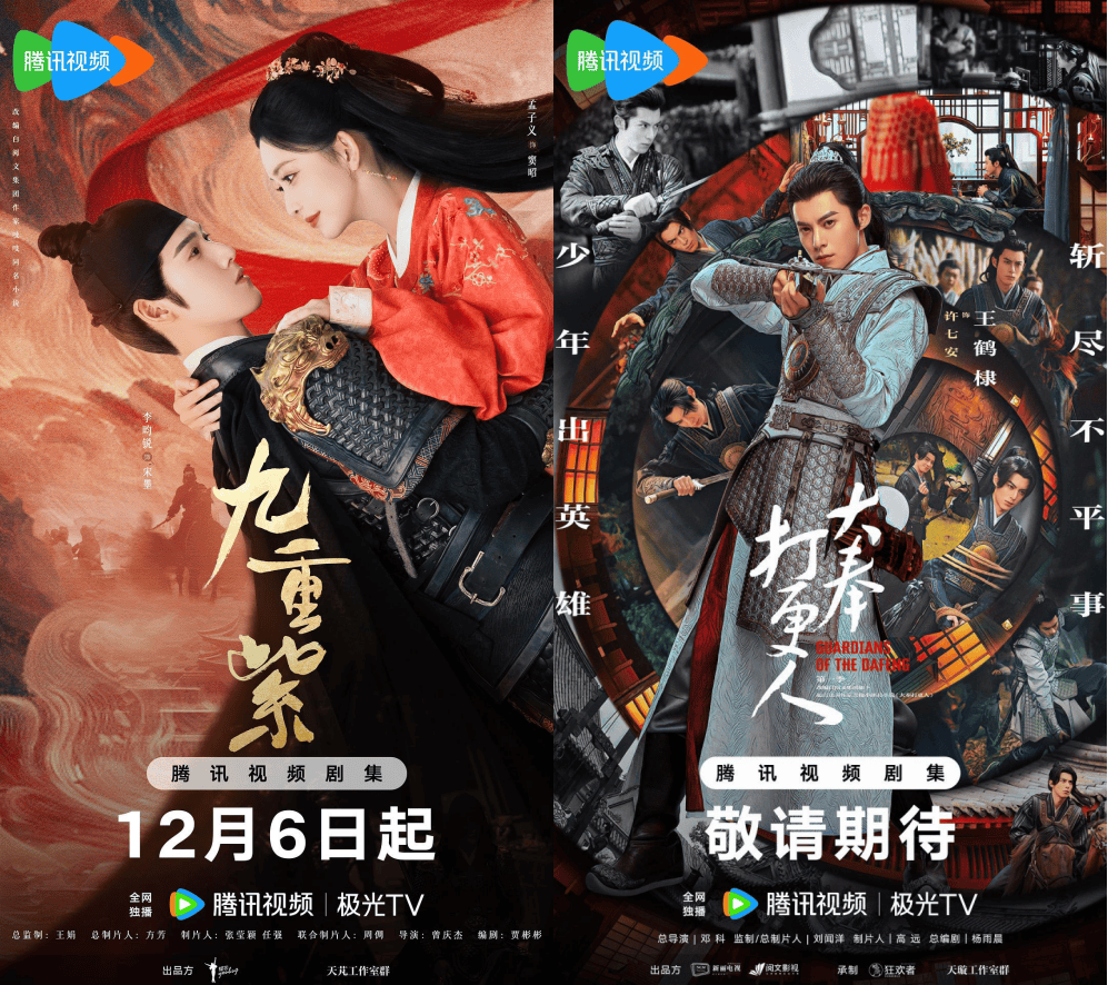 首先是放出确定消息的腾讯视频,其12月大剧片单中有两部古装题材剧集,一部是已经定档12月6日播出的古偶《九重紫》,改编自阅文集团作家吱吱的同名小说,由耀客传媒出品,孟子义、李昀锐领衔主演,定位于“双强宿命感高智斗骊袭爽剧”,集重生、宅斗、家国命运等元素为一身,主打强爽感的剧情和较具新鲜感的男女演员搭配是该剧主要看点。