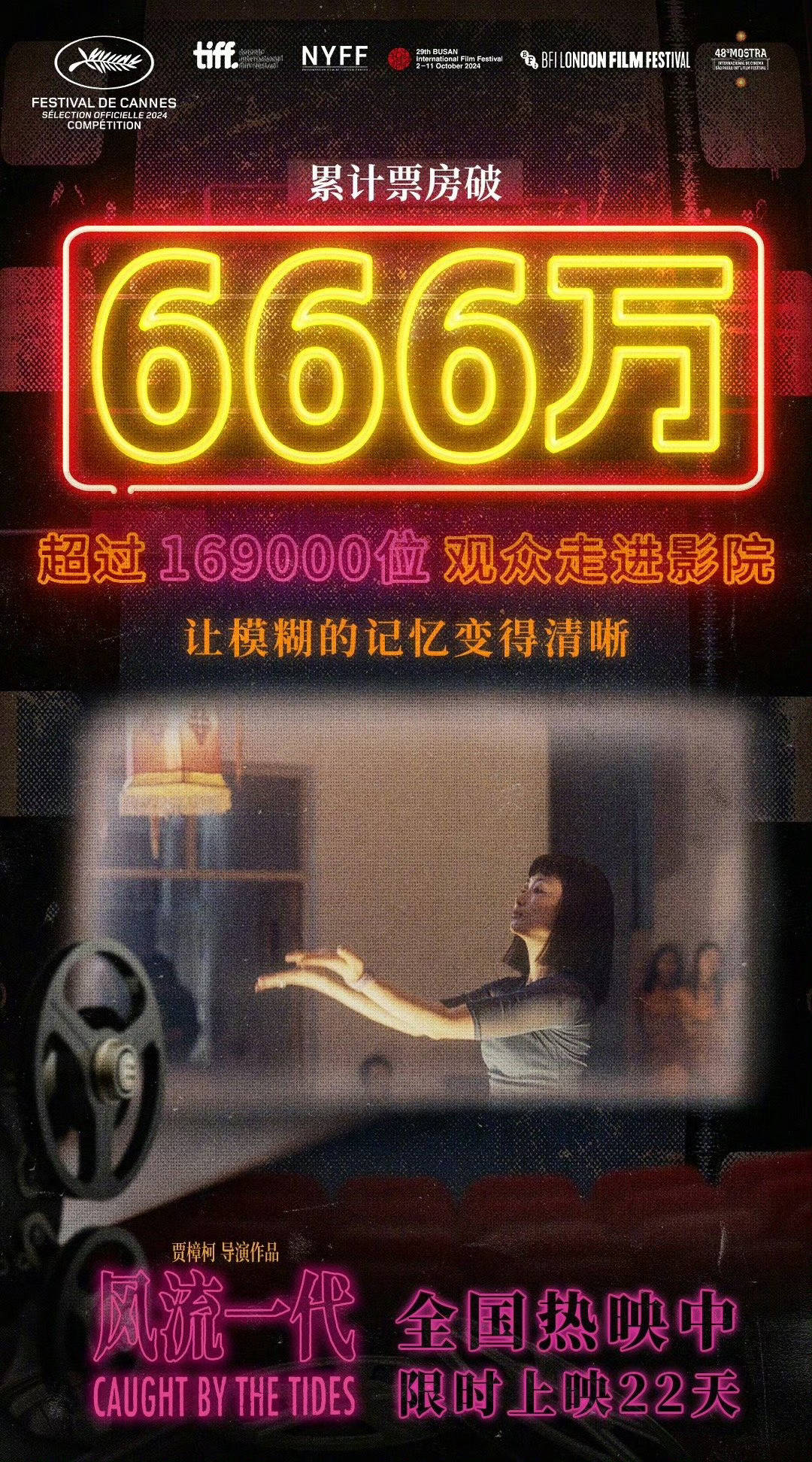 贾樟柯执导《风流一代》上映第15天累计票房破666万 将限时上映22天 - 超景影院