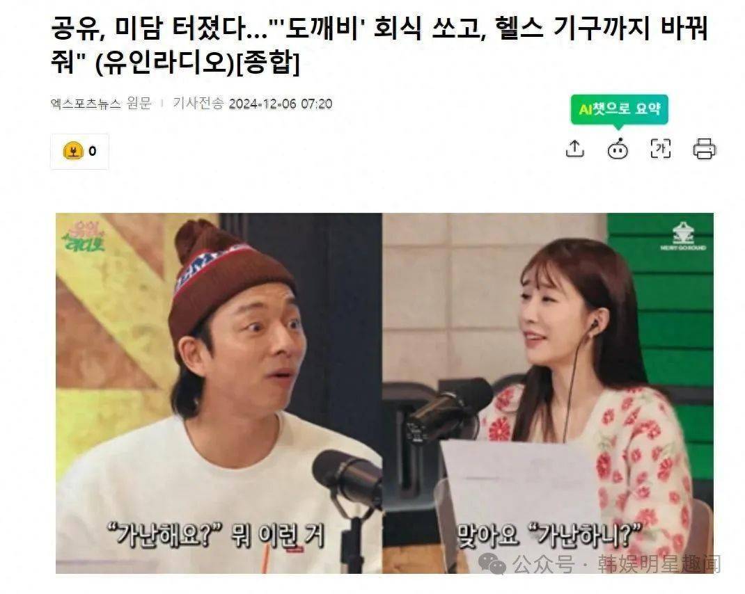 宝子们!如果你还以为孔刘只是那个演技炸裂、帅到不讲理的“鬼怪大人”,那你可能还没见识过他暖心到融化的另一面!据韩国媒体12月6日报道,昨日,刘仁娜的YouTube节目中再次迎来了孔刘做客,俩人不仅在线重现“鬼怪兄妹”的绝佳默契,还爆出了一连串让人笑到停不下来的幕后故事和暖心插曲。