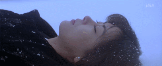 只见中山美穗饰演的博子,身着黑色丧服躺在雪地里, 任由雪花飘落在自己脸上。