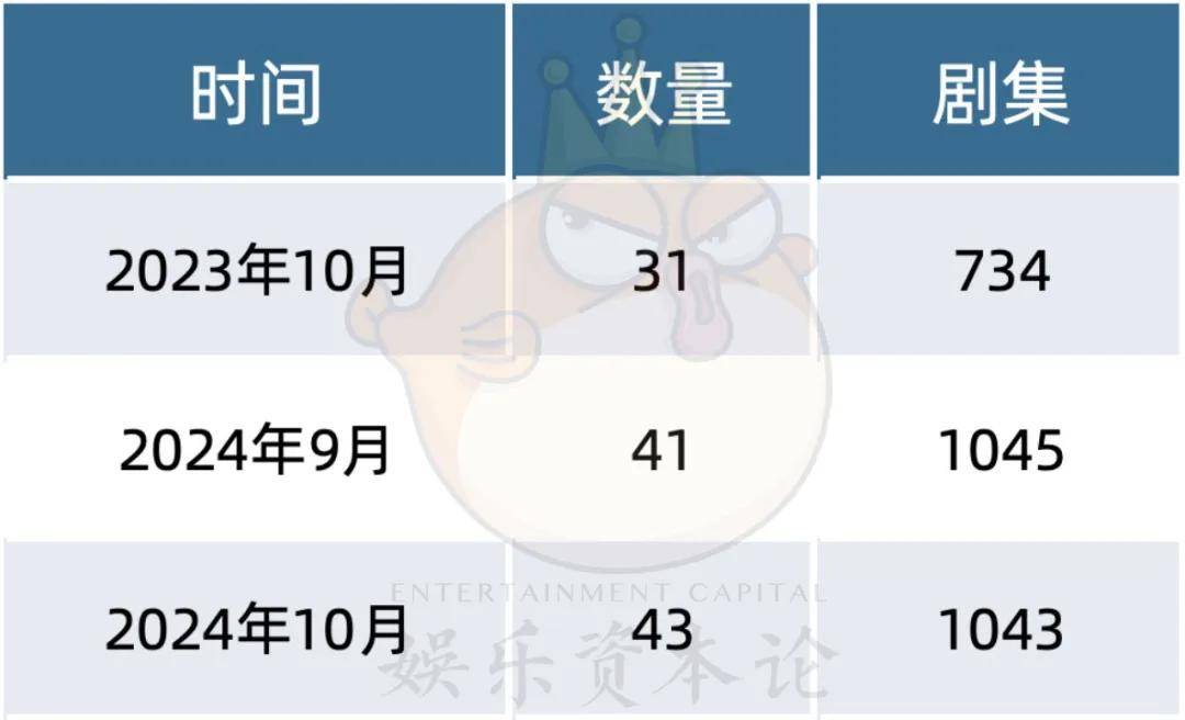 近日,广电总局公示了2024年10月重点网络影视备案信息。2024年10月,登记且符合重点网络原创视听节目制作相关规定的网络剧有43部,共计1043集。与9月的备案数量41部相比,10月网络剧备案数量略有上涨,与去年同期备案数量76部相比有大幅下降。