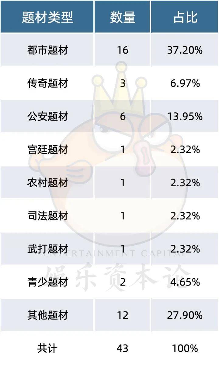 在题材方面,现实题材的占比相较于8月的51.9%、9月的58.5%,仍在稳步上涨,本月占比数为65.1%。