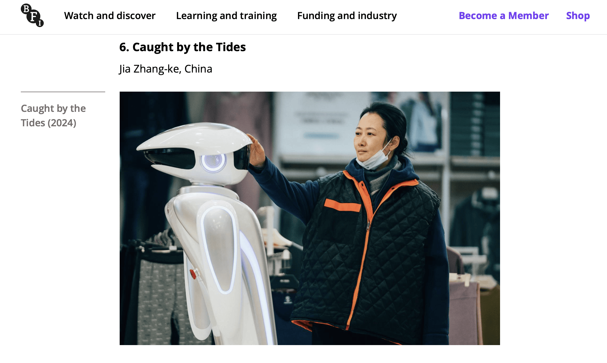 英国老牌电影杂志《视与听》(Sight and Sound)近日发布2024年度50部最佳电影榜单,由贾樟柯执导、赵涛主演的中国影片《风流一代》闯入年度十佳,位列第六。