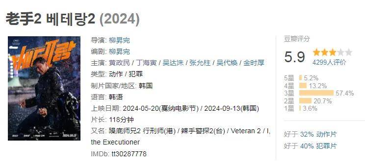 而他的经典动作片IP《老手》续作《老手2》于9月在韩国上映后,也曾连续5周霸榜韩国票房冠军,收获全球票房5524万美元。