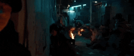 二是追捕闵康勋时,众人在天台上与闵康勋雨中交战。