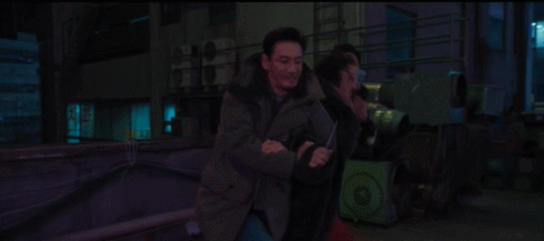 在这段长距离快速跑动追击的动作戏中,两人都施展跑酷身法,动作赏心悦目;
