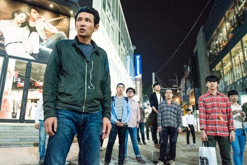 一是在电影中段,南山广场上,朴善宇追捕冒充“獬豸”的嫌疑人。