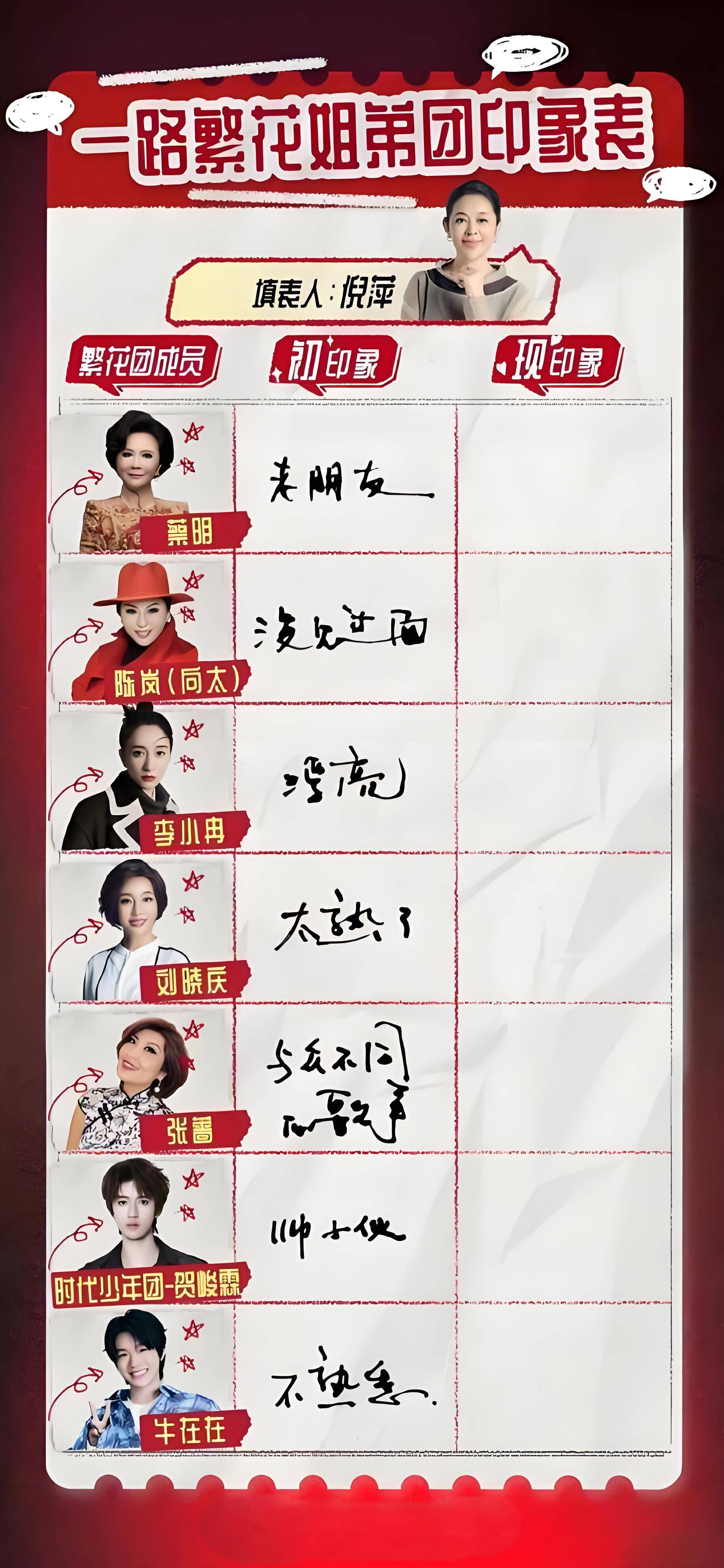 此前公布阵容的《一路繁花》则是姐姐搭档少年的模式,看起来形式上有所不同,由蔡明、陈岚(向太)、李小冉、刘晓庆、倪萍、张蔷、贺峻霖、牛在在组成“繁花团”。实质上,发挥的功能是类似的。