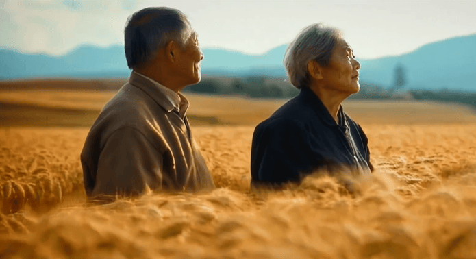 这个故事有趣在何处呢?它讲的还是人类情感最细腻的地方。收麦子这事儿,质朴无华。当然,在收麦子之外,这部短片其实呈现了一个现代人的普遍生存境遇问题。我们一面是大城市当中的白领,接触着最为现代的内容,一面,我们又是农村父母的孩子,我们的根,还在农村,还在泥土上。领子的白,和泥土的黑,是相互勾连的。所以说,贾樟柯导演拿着最现代的AI制作技术,讲的还是人类最朴素的情感内容。