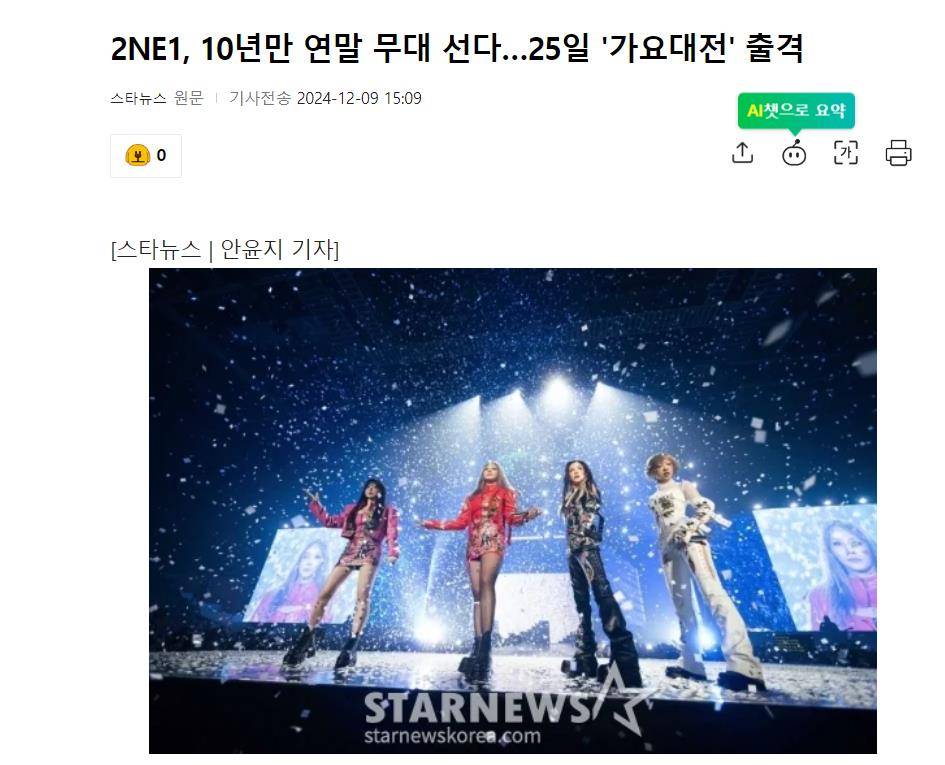 K-Pop老粉们快扶稳!据韩国媒体12月9日报道,“K-Pop传奇女团”2NE1,出现在公布的《歌谣大战》第三批出演阵容中,2NE1时隔10年将登上《歌谣大战》舞台! 是的,你没看错,是那个“想念你,想念你”的传奇女团,终于要重现江湖了!