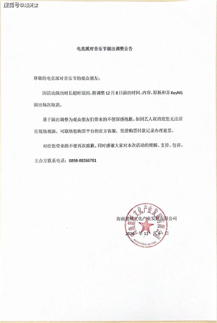 原来,王者荣耀音乐节提前三天,强行取消了杨和苏的演出部分。