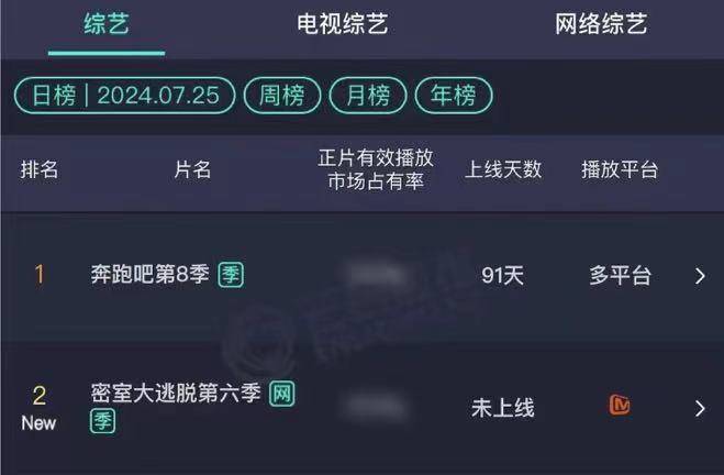 只有综N代的招商情况相对乐观。击壤数据显示,2024上半年,电视综艺招商TOP20中,综N代占比超六成,网综招商的TOP10中,综N代占比六成。