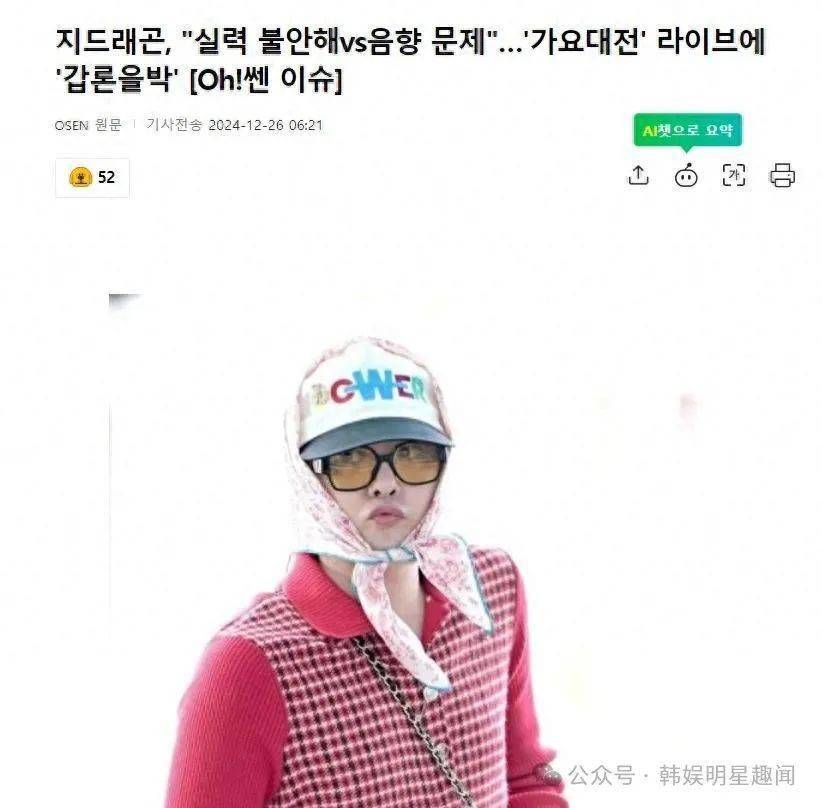 宝子们!圣诞刚过,你们是不是还沉浸在年末舞台的狂欢中?这不,咱龙哥——权志龙在《2024歌谣大战》上的表现,又一次冲上了热搜。不过,热搜上的关键词却有点不太友好,比如“现场翻车”、“实力不稳”啥的,惹得网友们吵成一片。