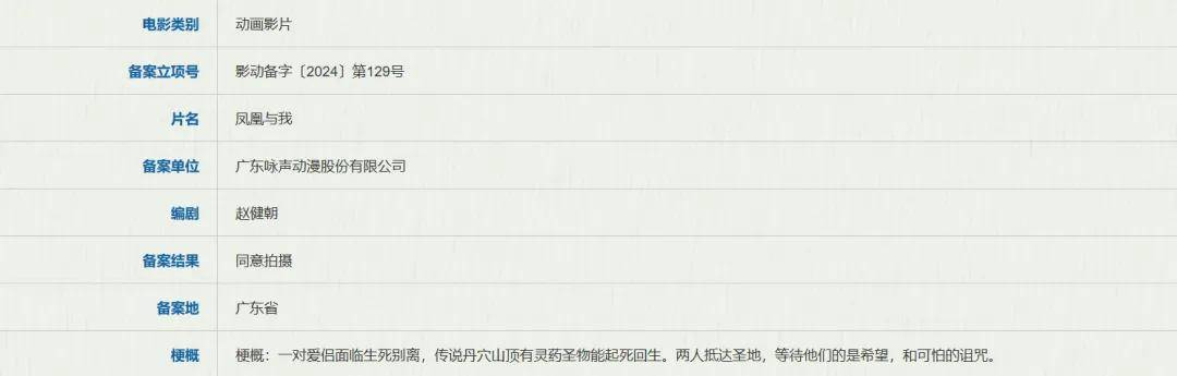 咏声动漫作为广东动漫行业的代表企业之一,近年来除猪猪侠系列以外,开始致力于成人动画领域的布局。在2024粤港澳大湾区动画电影周上,咏声动漫发布了其“东方传说”系列的第二部国漫作品《凤凰与我》,并展示了先导预告片。该影片目前仍在制作中,预计将于2027年与观众见面。