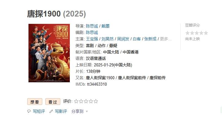 今年的春节档热度空前高涨,观众的观影欲望也愈发强烈。根据猫眼和淘票票两大票务平台的数据,截止到1月16日,《唐探1900》《哪吒之魔童闹海》《射雕英雄传:侠之大者》《封神第二部:战火西岐》《熊出没·重启未来》和《蛟龙行动》这六部影片的累计想看人数已经突破了320万。