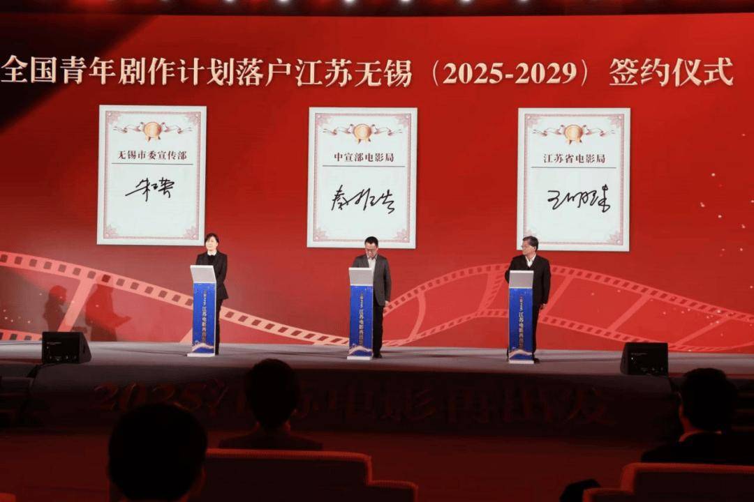 一批重大项目也在活动仪式上落地签约。中宣部电影局副局长、电影剧本规划策划中心主任秦振贵,江苏省委宣传部一级巡视员王明珠和无锡市委宣传部副部长朱瑛就全国青年剧作计划落户无锡(2025-2029)进行了签约。