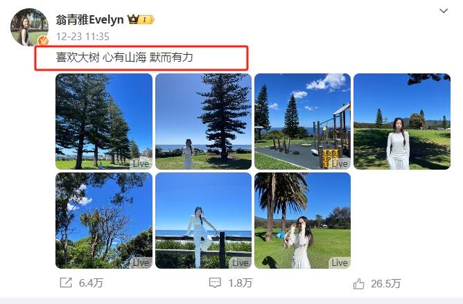谁知两个多月过去,翁青雅还是坐不住了,不仅在多个平台连发数十张照片官宣回归,还配上了“大树默而有力”的文字,用大树自比,告诉大家即便她选择沉默不解释,也是有力量的,大有一种问心无愧的意思,但是她这次高调回归,不仅人气锐减,小屋其他11人也无一人买账,情况略显尴尬。