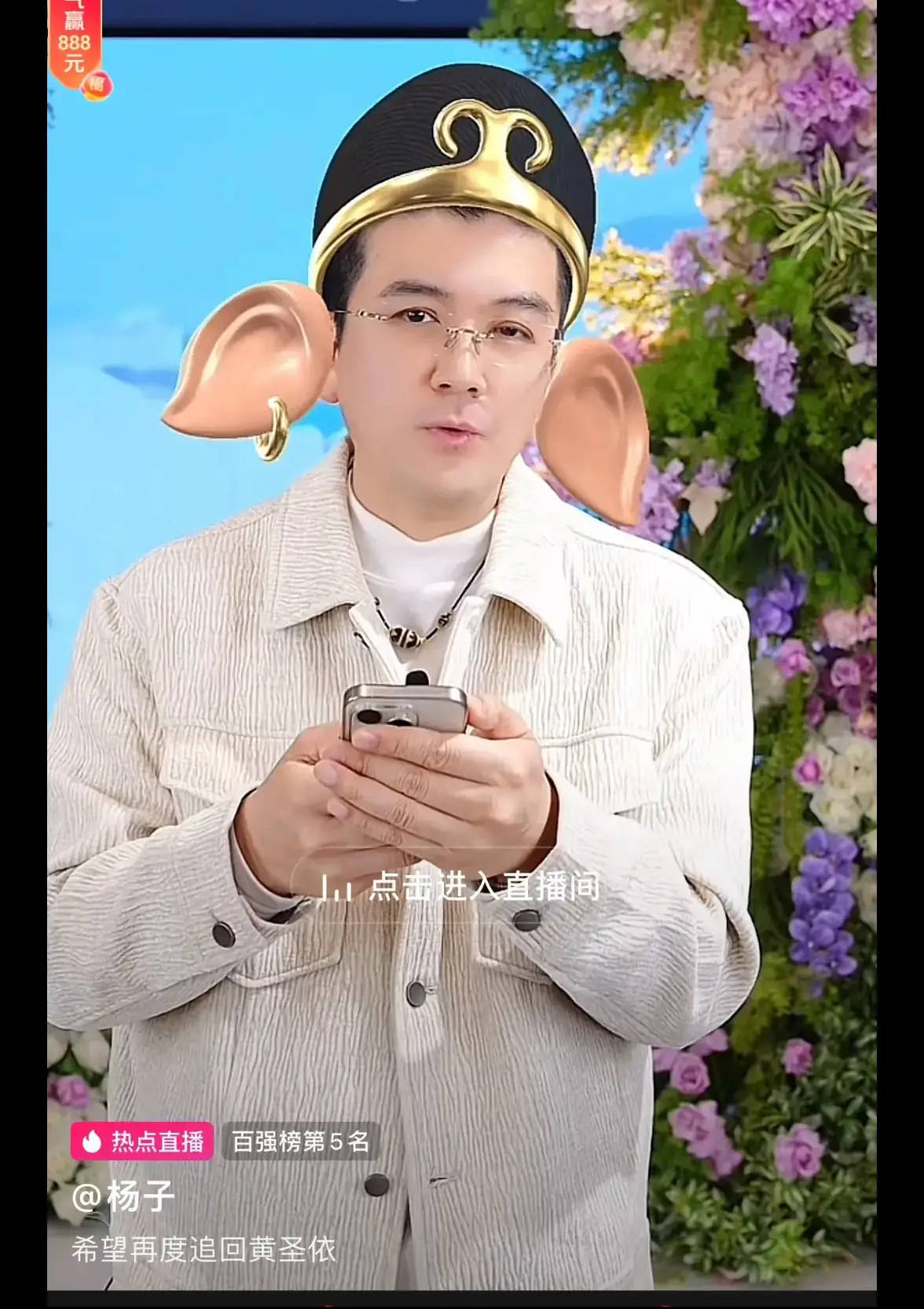 当晚,杨子直播间的标题是“希望再度追回黄圣依”!