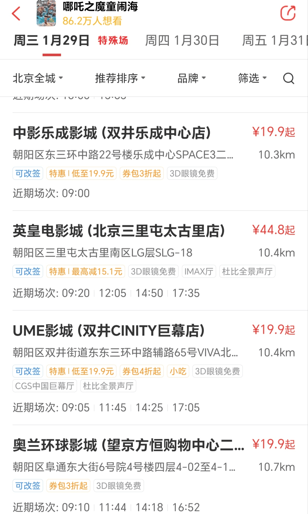 今年各大发行方再次启动票补,《哪吒之魔童闹海》《封神第二部:战火西岐》《唐探1900》《蛟龙行动》几部影片观众都能在平台以19.9元买到大年初一的电影票。