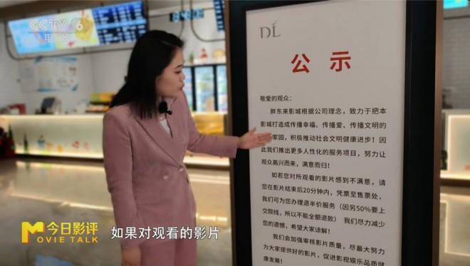 节目开始,主持人晓丽抵达河南许昌的胖东来影院,体验了一次“无理由退票”服务。据影城工作人员介绍,胖东来影城的无理由退票服务是指:如果顾客对观影影片不满意,可以凭票在观影结束后20分钟内办理退半价服务,因为影片票价的50%要上交院线。