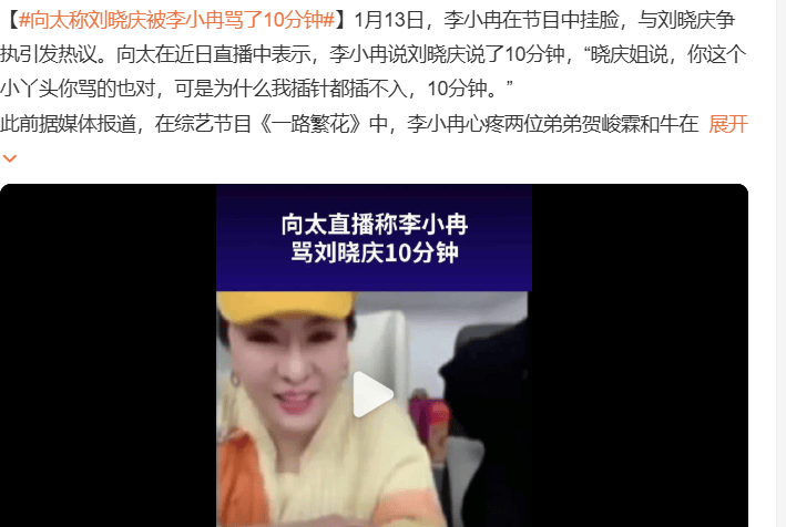 针对李小冉的新一轮骂战开始,向太哐哐收获一波流量。