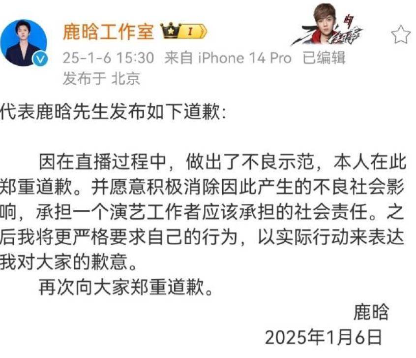 不过,鹿晗似乎没这个顾虑,不但对待事业越来越佛系,直播也开始放飞自我,但却因为这次放飞而出事了。