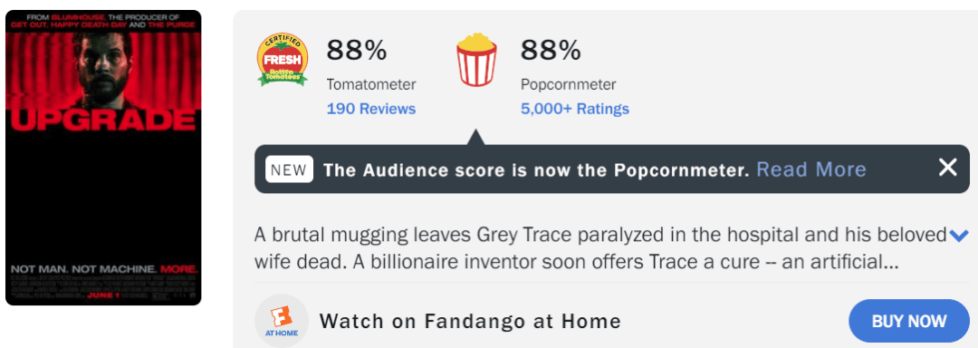 雷·沃纳尔之前两部片子《升级》和《新隐形人》的烂番茄: