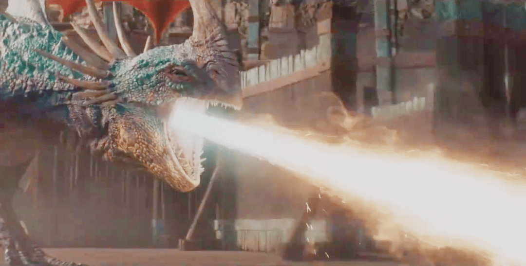 原版烈焰狂魔的设计体现出了一种威武霸气,但同时也有一点逗比的感觉,地包天设计是其突出特征,但是真人版并没有把这一点还原出来,而且它本来就是头部比较大,吻部很宽,真人版却将其变成了鳄鱼嘴巴,反差有点大,两相对比,真人版跟其他电影中的普通飞龙并没有什么区别,这一点有点让人失望了。