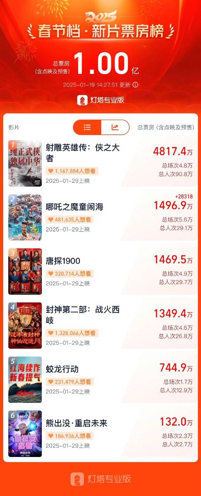 不过随着春节档临近,新片打开预售,就能端倪初现。在经过了一两年稍微的低迷回落之后,很多人都看好2025年的春节档总票房规模成绩不差,果然很快预售就破亿,成为史上春节档预售最快破亿的一年,创造新纪录。
